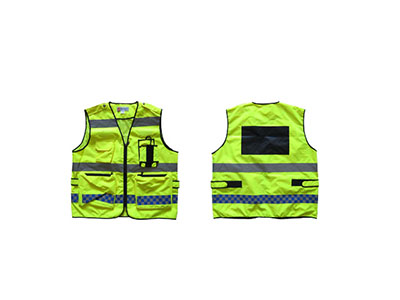 • KMS-2D反光背心 顏色:熒光綠 材質(zhì):滌綸 高晶反光條 背心為前開襟馬甲式樣,開襟用拉鏈拉合,左右胸前分別縫制一個(gè)固定和可調(diào)節(jié)深度的兩個(gè)口袋及警徽、警號(hào)毛刺貼,腰部通過錦絲